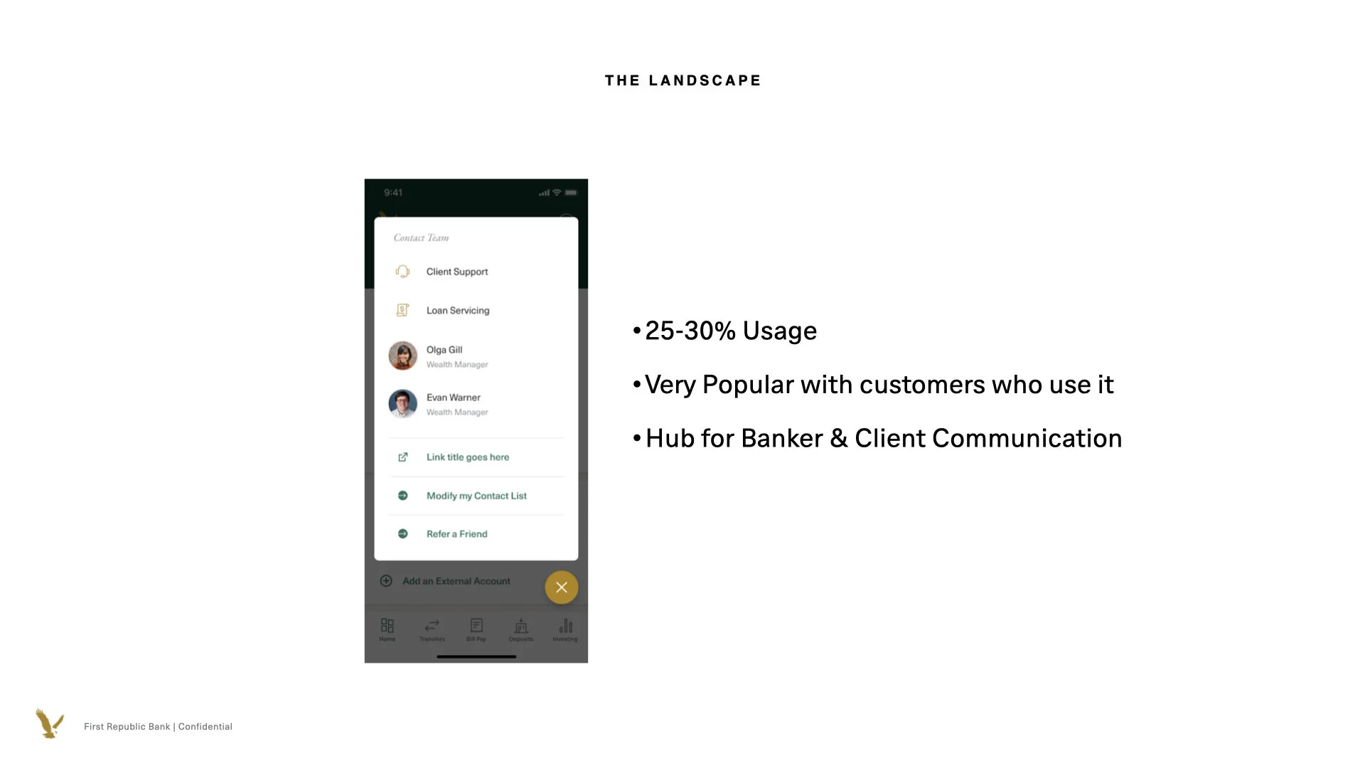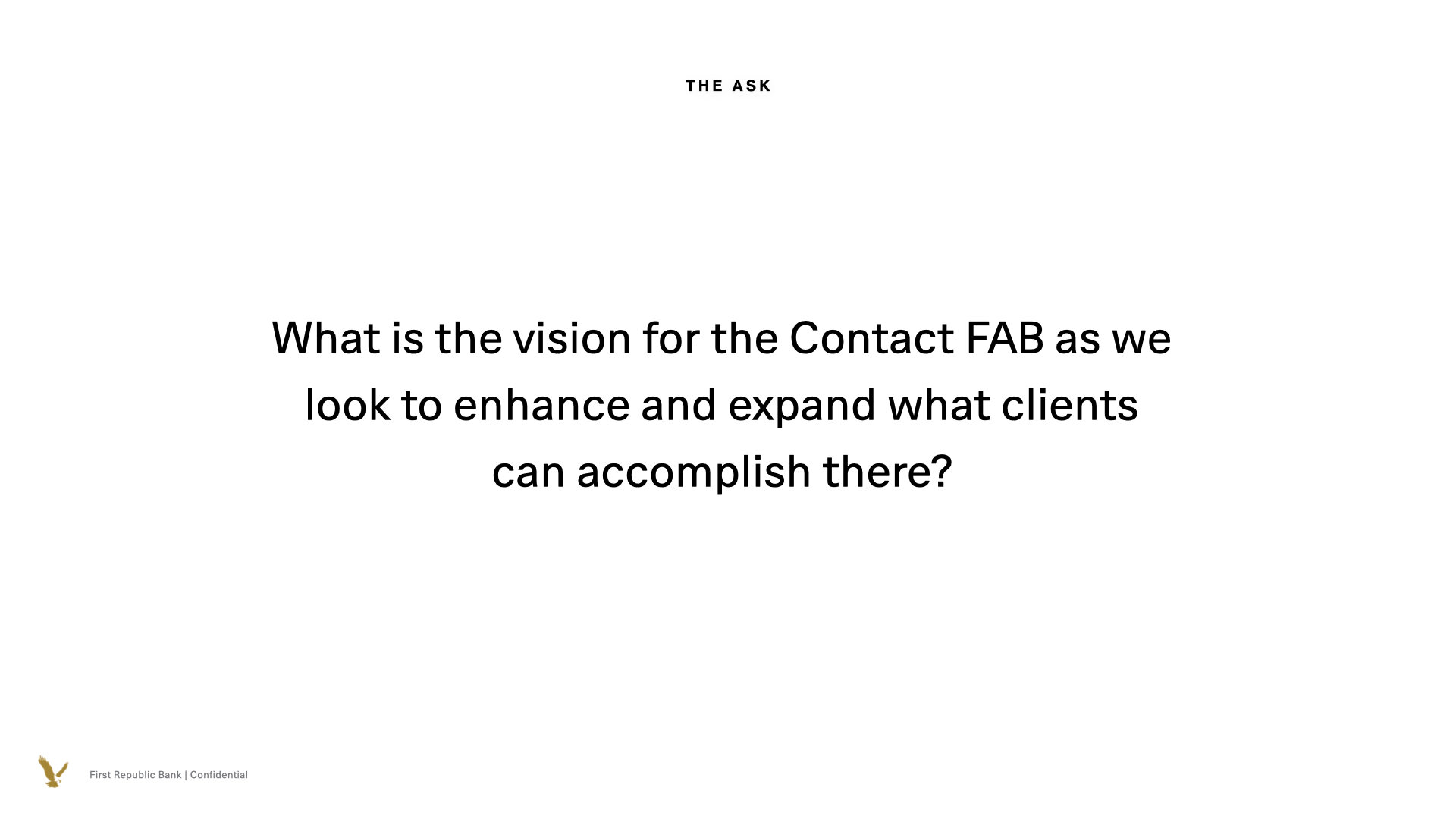 • Digitally extend First Republic’s white glove service through a personalized, intuitive platform.