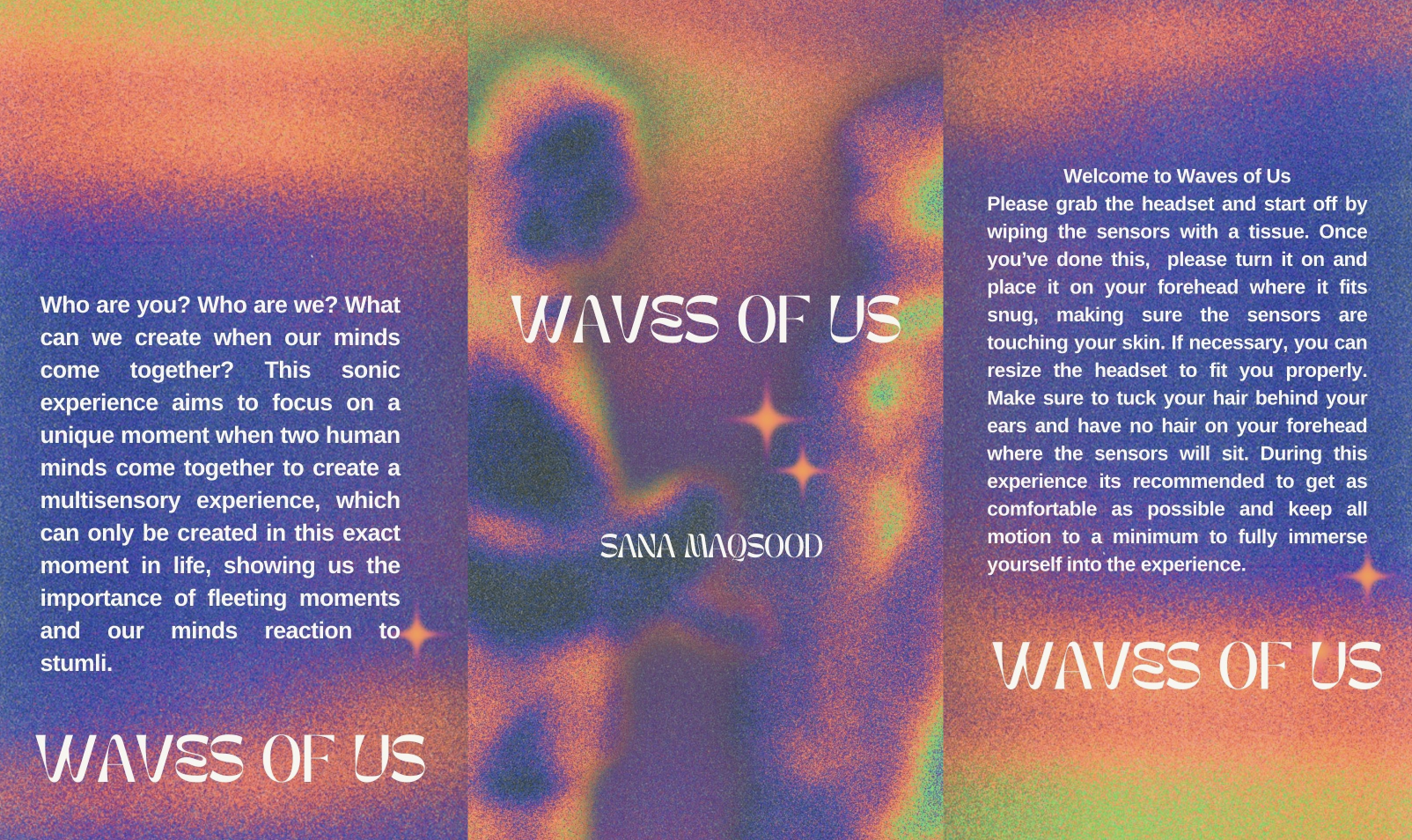 Sana’s journey in creating Waves of Us was inspired by two moving experiences in her life: a sound bath in Bali, Indonesia and a sound sculptured theater in San Francisco, California that is experienced in pitch darkness. Both experiences had common characteristics in that they are based on impact to an individual by sound and vibrations. This paired with Sana’s user experience background and constant desire to understand humans on a psychological level, pushed her to see what else she could explore when it came to human beings, which is where Biofeedback comes in. Biofeedback is the study of humans based on body functions in order to create the best personalized experience.